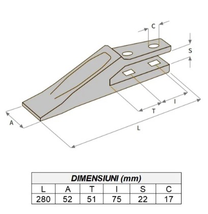 Dinte central pentru cupa buldoexcavator tip CAT, cod 6Y6335, utilizat pentru lucrari de excavare si manipulare materiale. Fabricat din materiale rezistente la uzura si socuri, asigura o durata de viata indelungata si performanta constanta in conditii grele de lucru.
